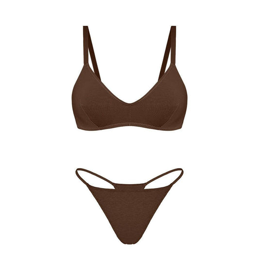 Seamless Thin Underwear Wireless Comfortable Soft Support Sexy V-Shaped Bra T-Back Suit Women