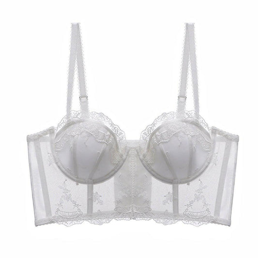 French Sexy Embroidery Lace Long Underwear Women Thin Cup Soft Steel Ring Boning Corset Body Shaping Push up Bra