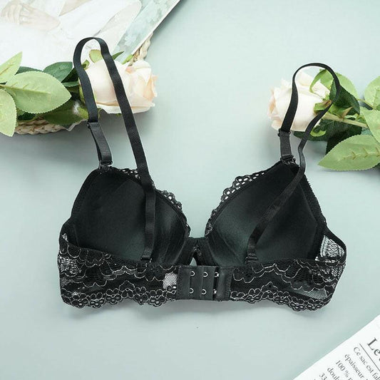 Lace Women Gathering Bra Fashionable Comfortable Three Row Bra With Steel Ring Underwear Big Chest Show Small Thin