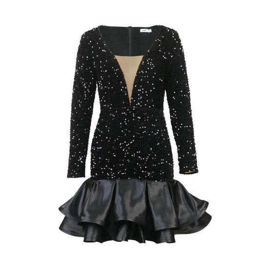 See-through Deep V-neck Sequins Dress Banquet Ball Party Short Dress