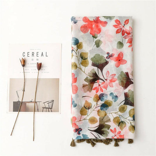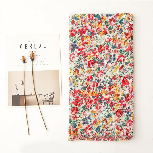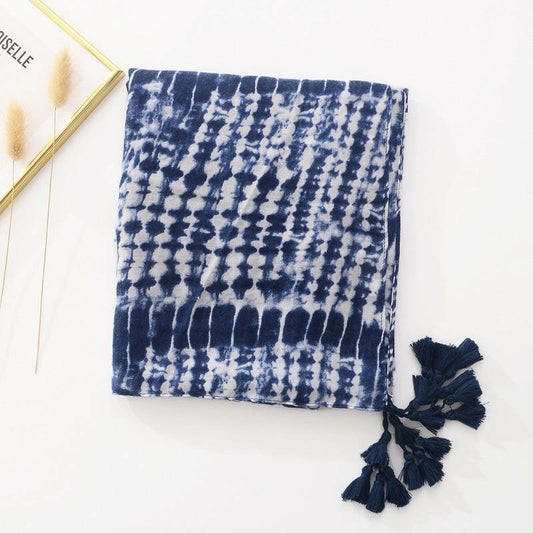 Blue And White Tie-dyed Cotton And Linen Feel Scarf Retro Artistic Travel Sun Protection Shawl