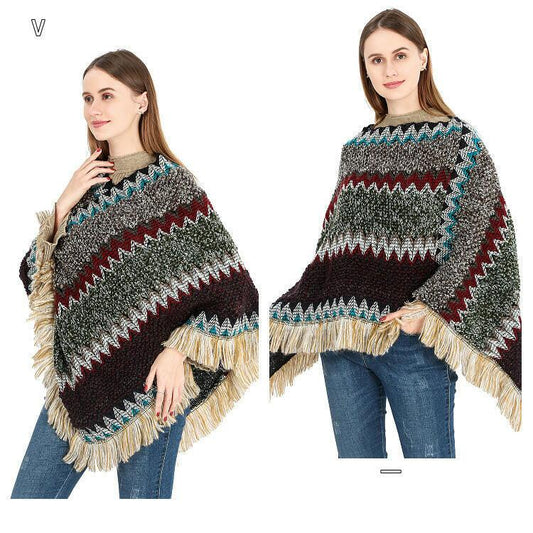 Warm Autumn And Winter Colorful Ethnic Style Pullover Cloak Women