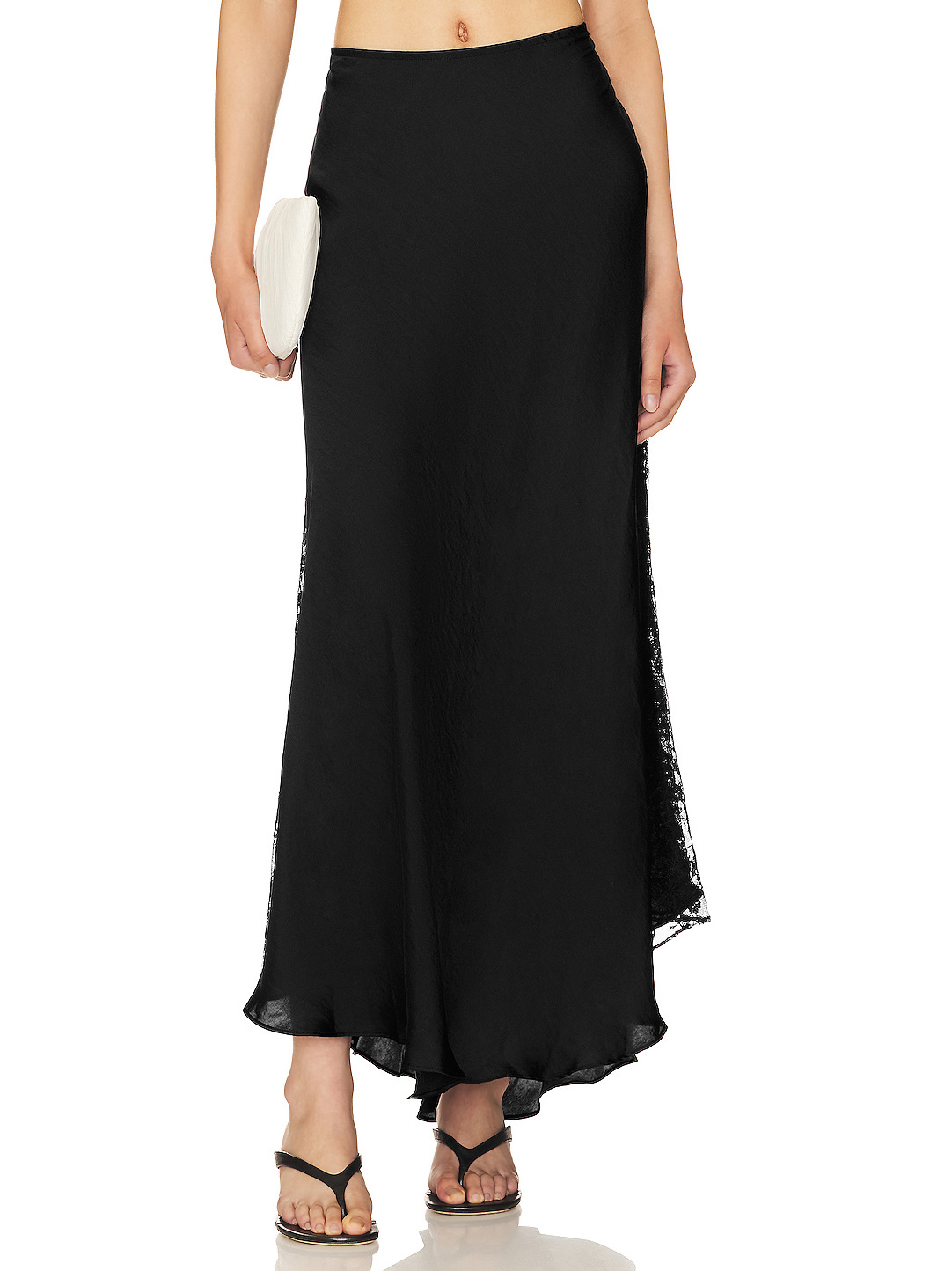 Satin Skirt Women Niche Lace Stitching Sexy Elegant Mid Length Skirt